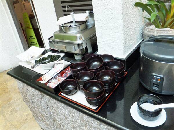 日本人の宿泊者が多いこともあり、日本食として味噌汁と白米が用意されています。