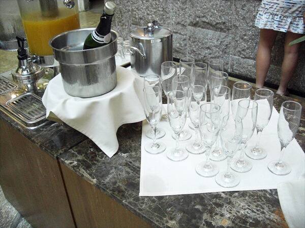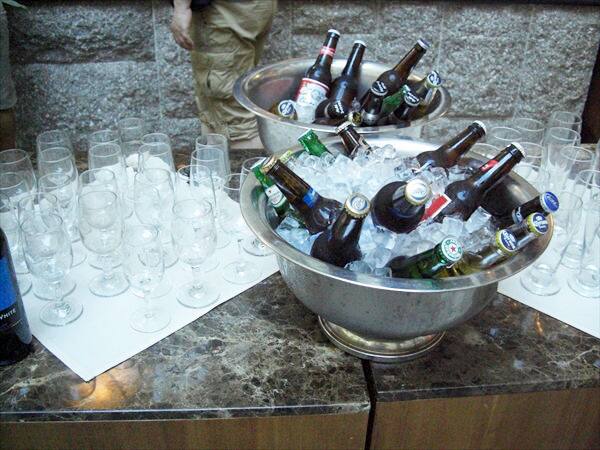 飲み物はソフトドリンクに何種類かのビール、赤白ワイン、スパークリングワインが用意され、飲み放題でセルフサービスとなっています。
