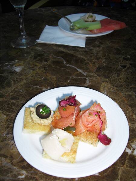 かなり年配の夫婦の方が毎日カクテルタイムにいましたが、テーブルの上には最初に用意されますカナッペ類のオードブルをたくさん載せたお皿がありました。