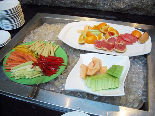 おつまみのサラダやチーズ、フルーツはよく補充されるのですが、オードブルは最初に置かれたら、途中の補充は1~2回ほどとなっていました。