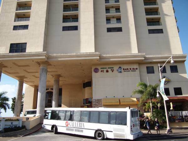 ホテルの場所はタモンの中心から少し離れた場所となりますので、移動はシャトルバスの利用が便利です。