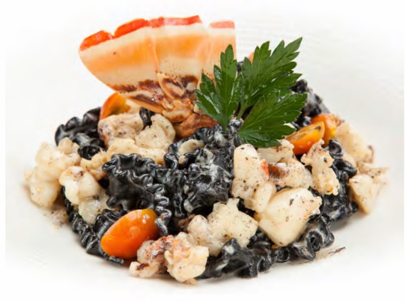 イカスミパスタ、ロブスター、チェリートマト、ヴェルモットソース