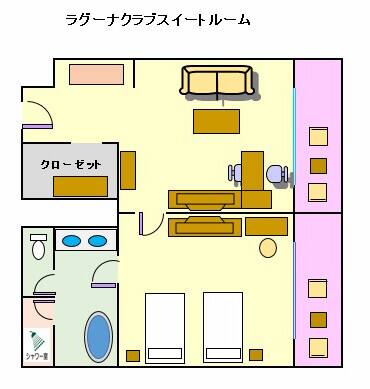 部屋の中で一番のお勧めはクラブルームも利用でき、部屋からの海の眺望も楽しめるスイートルームのラグーナクラブスイートです。