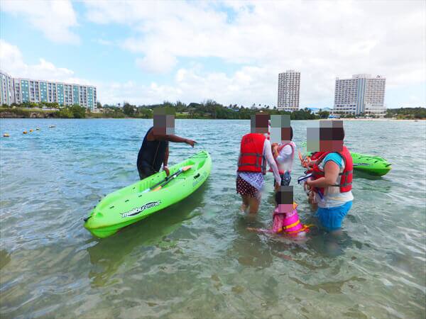 カヌーに乗るにはライフジャケットを着けますし、島まで向かう海は深くありませんので安心してカヌーに乗ることができます。