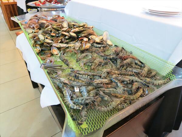 美味しかったのはエビとムール貝をガーリックソースで炒めてもらったもので、シャンパンと共にたくさん食べてしまいました。