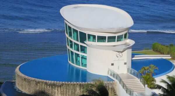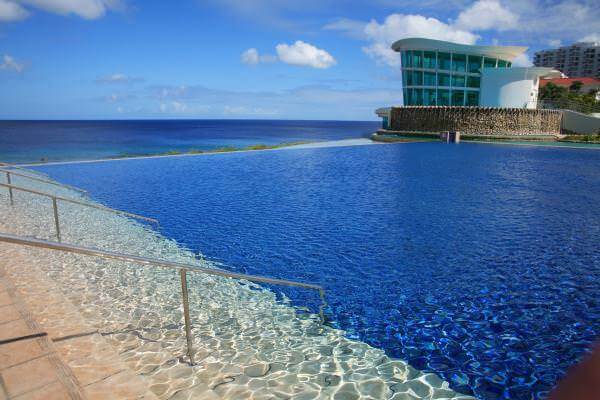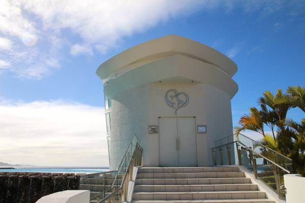 グアムの高級ホテルであるリーガロイヤル・ラグーナ・グアム・リゾートにありますチャペルのホワイトアロウチャペルは、グアムの青い海に囲まれて海の上に浮かんで挙式を行っているような絶景のビューがお薦めのチャペルです。