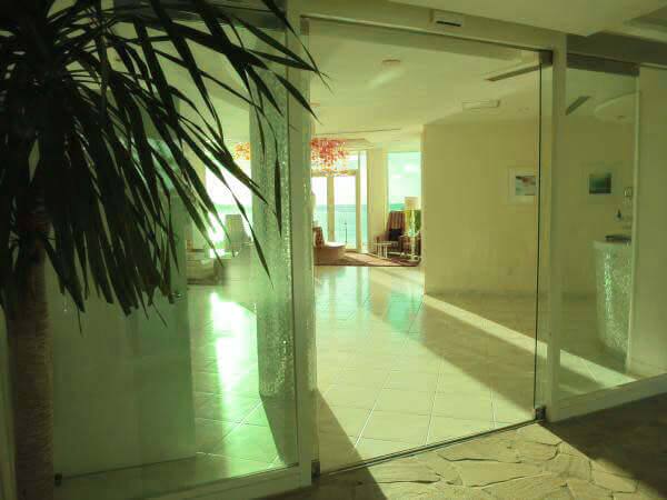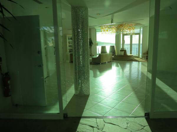 グアムの高級ホテルであるシェラトンラグーナグアムのロビーの奥にホワイトアローで挙式する方のためのロビーがあります。