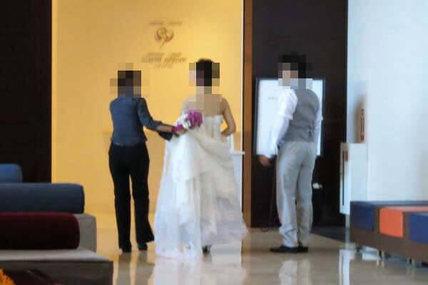 ・挙式前日の打ち合わせ、ドレスの試着、当日の着替え、ヘアメイクはシェラトンのロビーの近くにあるウエディングサロンにて行われます
