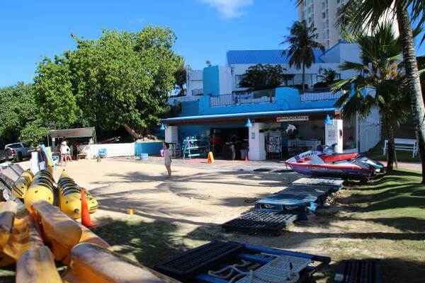 隣にありますオーシャンジェットクラブのジェットスキーの音がうるさく感じることもありますし、タモン湾と違いこちらの海はエンジン付きのジェットスキーの影響か珊瑚の周りにオイルが着いていることもありますので、エンジン物禁止のタモン湾の海水よりもオイルなどで汚れているかなと個人的には思ってしまいました。