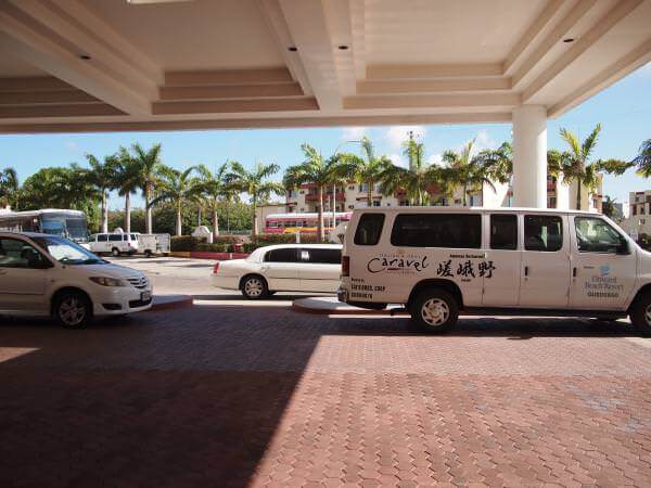 星野リゾートリゾナーレグアムのシャトルバス乗り場はホテルの出入り口を出てすぐ左側にバス停の看板があり、この横でバスを待つ方が並びます。