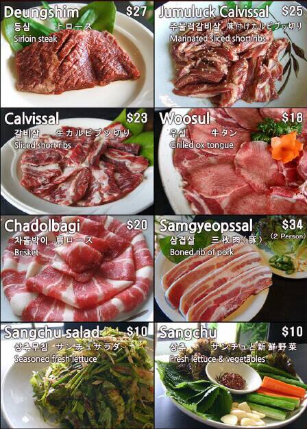 内容は特上ロース、牛タン、生カルビブッタ切り、肩ロース、サンチェサラダで52.00ドルとなっています。