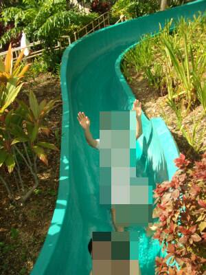プールのウォータースライダーは何回も滑りますし、ビーチボールでも遊びます。