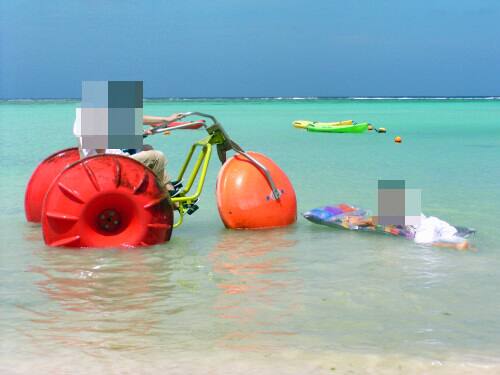 プールに飽きたら海で遊具やシュノーケリングを楽しみます。