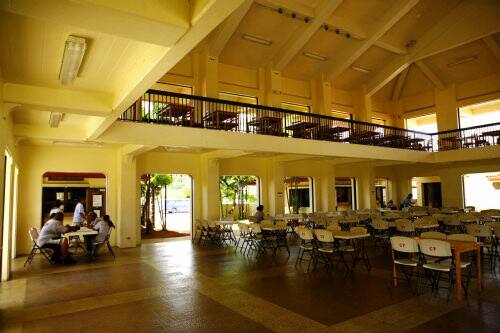 昼食をレストランか開いているテイクアウトのお店でプレートランチを買ってビレッジ内の建物でテーブルがあるフードコートの席のような場所で食べることができます。