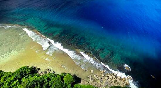 さんご礁と青い海、広がる雄大な景色の水平線はとてもすごいものです。