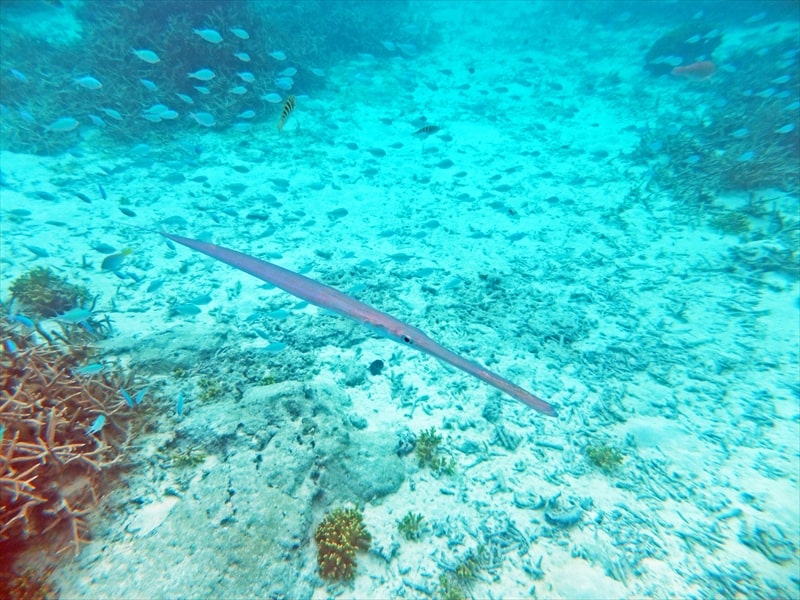 魚の群れもとても多いですし、大きなダツの泳ぐ姿を楽しむことができます。