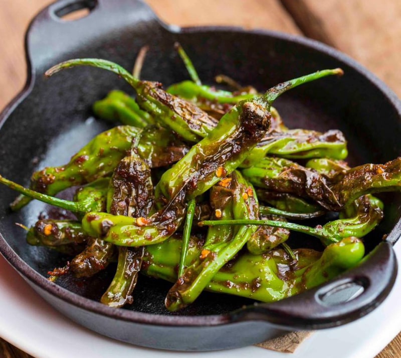 東アジア産シシトウの醤油、ニンニク、赤唐辛子ソテー