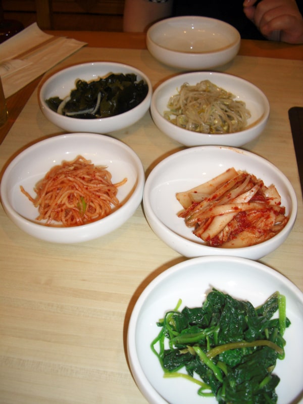 まずは韓国料理定番のサービスの惣菜が運ばれてきますので、料理が出るまでビールを飲みながら惣菜を頂きました。