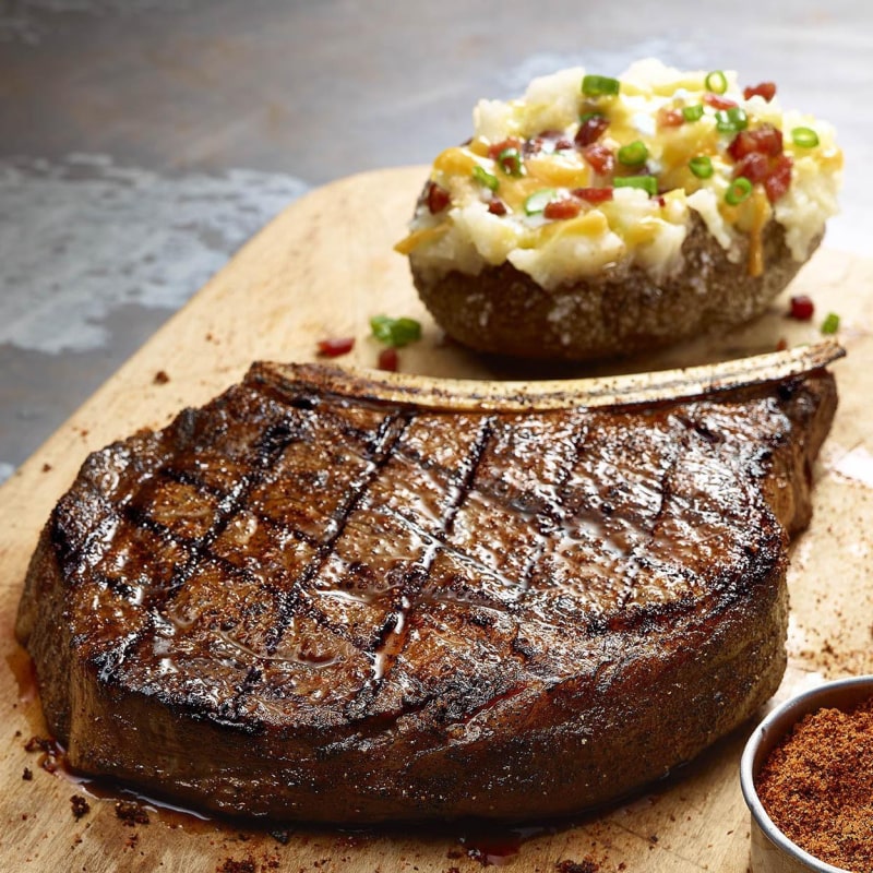 骨付きストリップと柔らかいフィレ肉が1枚の厚切り肉に組み合わせています