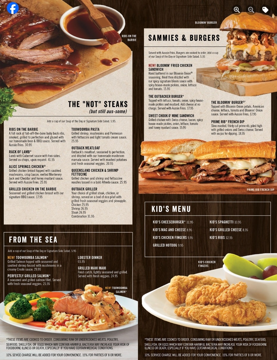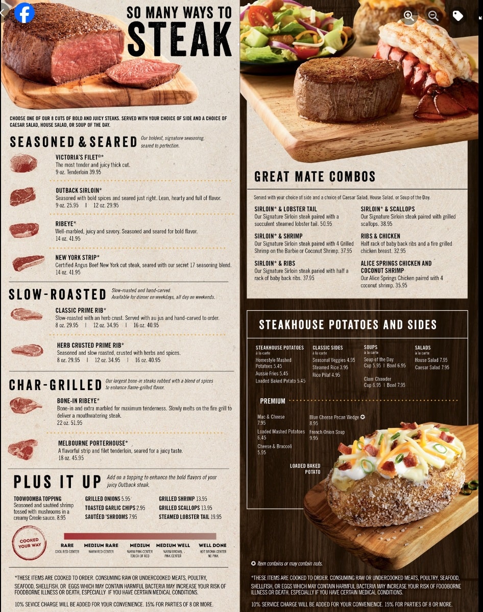 グアムのアウトバックステーキハウスの最新メニューを確認したいのでしたらフェイスブックのページにメニューが表示されていますので見てみましょう。
