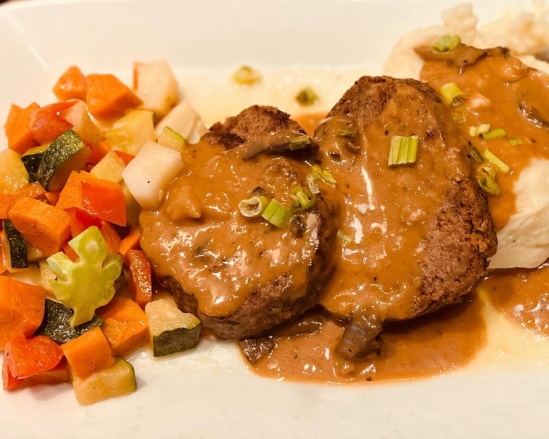 アウトバックのミートローフに自家製マッシュルームマルサラソースをかけた一品