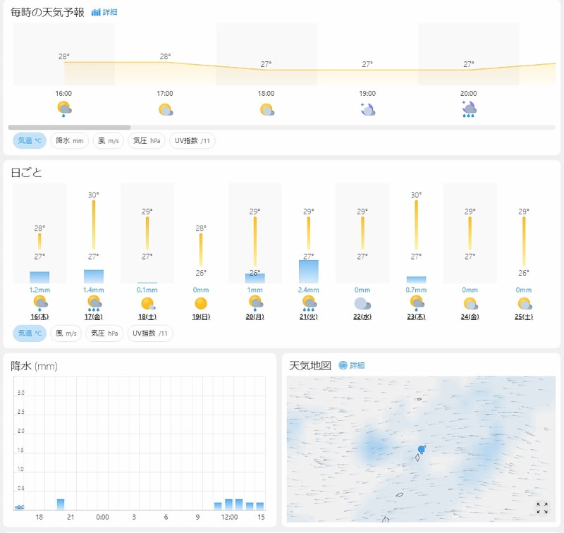 こちらだけで心配な方はこちらの天気予報がお勧めです。