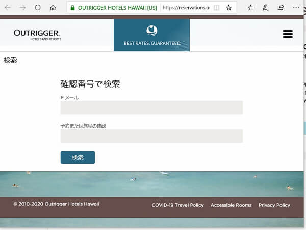 それでもしょうがないとキャンセルのためにグアムアウトリガーのサイトからの手続きをしようと思いホームページを見ました。
