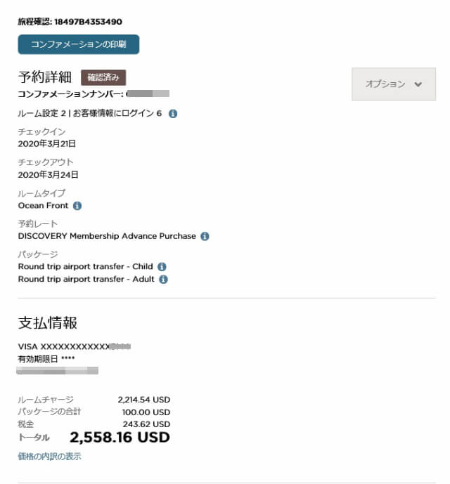 オーシャンフロントの予約をそのままと思ったのですが、残念ながら3泊での宿泊代金が1室5万円ほどのアップとなってしまうのです。
