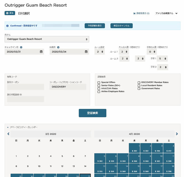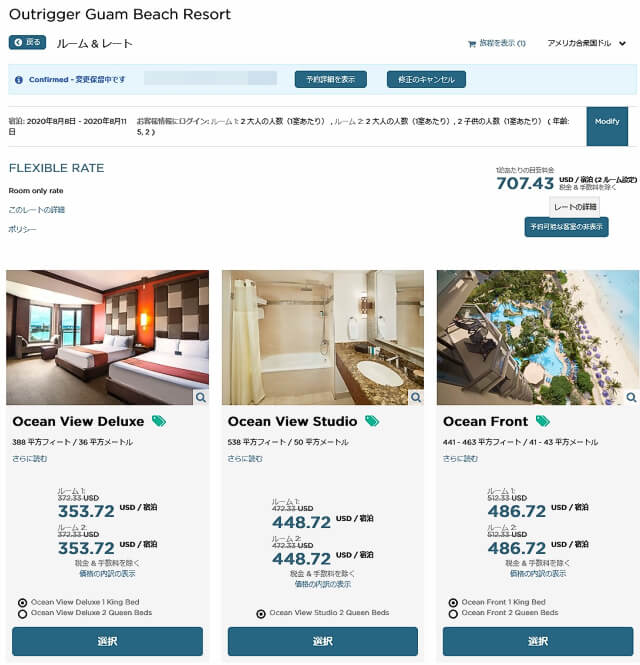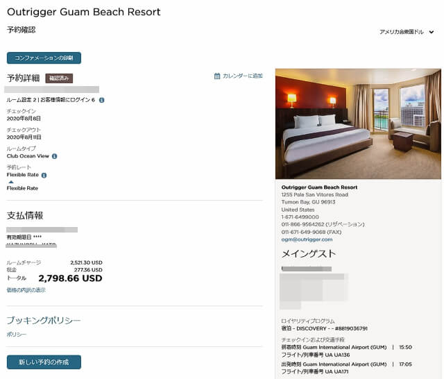 今回は個人手配旅行でしたのでアウトリガーグアムリゾートの宿泊予約は一番安価なキャンセルができないというプランで予約しました。